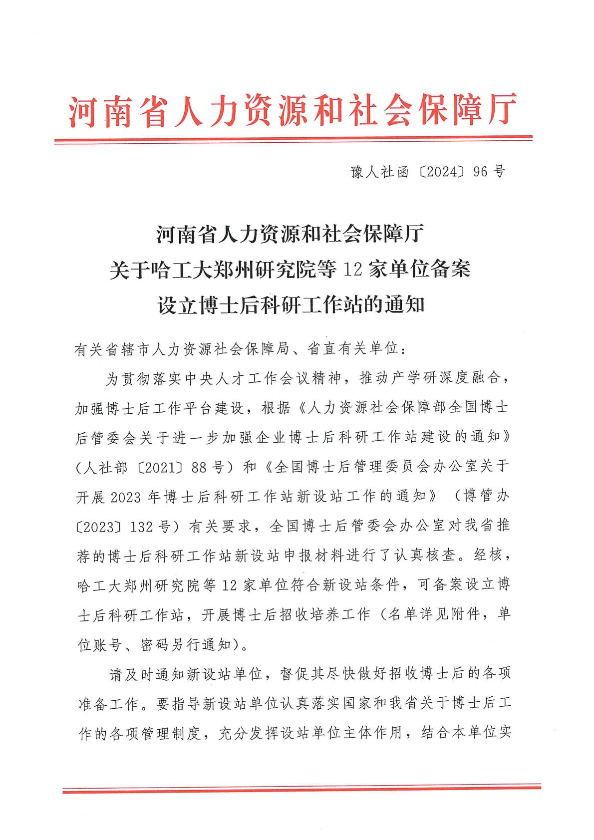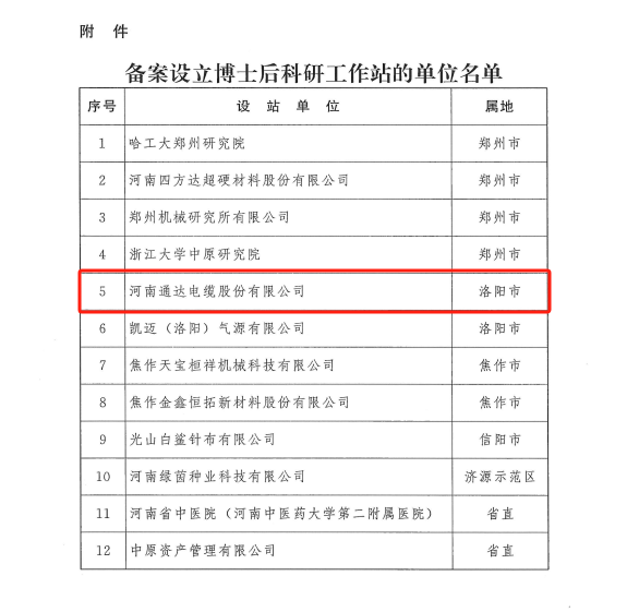 为贯彻落实中央人才工作会议精神,推动产学研深度融合,加强博士后工作平台建设,根据《人力资源社会保障部全国博士后管委会关于进一步加强企业博士后科研工作站建设的通知》(人社部 [2021]88号) 和《全国博士后管理委员会办公室关于开展2023年博士后科研工作站新设站工作的通知》(博管办 [2023]132号) 有关要求,全国博士后管委会办公室对我省推荐的博士后科研工作站新设站申报材料进行了认真核查。河南快猫官网WWW在线观看电缆股份有限公司、哈工大郑州研究院等12家单位符合新设站条件,可备案设立博士后科研工作站,开展博士后招收培养工作。