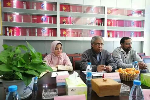 2018年10月29日,外贸部销售经理王建立陪同巴基斯坦客户到公司进行为期15天的验货。(图为我公司领导正与巴基斯坦客户进行商务洽谈)